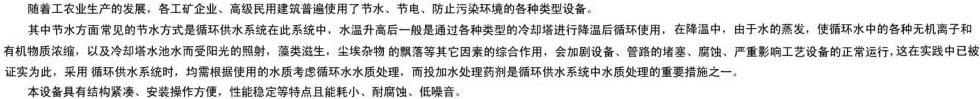 3. 計量裝置及投加方式:JY系列中有兩種:(1)是采用計量泵投加。(2)用水射器投加,轉子流量計計量。如泵前投加,水射器可以不用,水射器需要壓投入在2kg/cm
