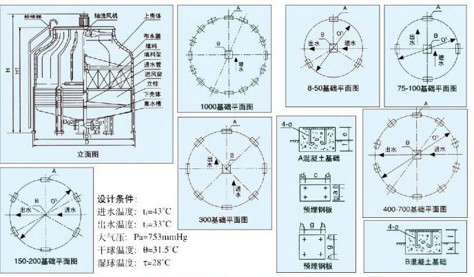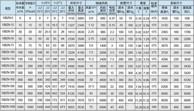 10BZN中溫型逆流式玻璃鋼冷卻塔