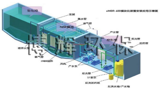 由于MBR膜的存在大大提高了系統(tǒng)固液分離的能力,從而使系統(tǒng)出水,水質(zhì)和容積負荷都得到大幅度提高,經(jīng)膜處理后的水水質(zhì)標準高,經(jīng)過消毒,形成水質(zhì)和生物安全性高的再生水,可直接作為新生水源。由于膜的過濾作用,微生物被截留在MBR膜生物反應器中,實現(xiàn)了水力停留時間與活性污泥泥齡的分離,消除了傳統(tǒng)活性污泥法中污泥膨脹問題。膜生物反應器具有對污染物去除效率高、硝化能力強,可同時進行硝化、反硝化、脫氮效果好、出水水質(zhì)穩(wěn)定、剩余污泥產(chǎn)量低、設(shè)備緊湊、占地面積少(只有傳統(tǒng)工藝的1/3-1/2)、增量擴容方便、自動化程度高、操作簡單等優(yōu)點。